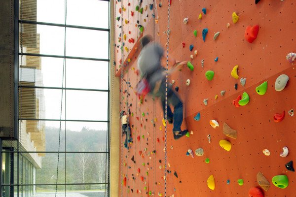 Le mur d’escalade moderne de l’auberge de jeunesse d’Echternach mesure 14 mètres de haut. Il est donc parfaitement adapté aux cours d’escalade réguliers et à l’escalade libre, que ce soit pour les débutants, les avancés ou les familles. Le matériel d’escalade peut également être loué sur place.